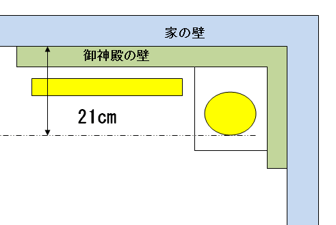 御神殿内の配置は上図のようになっているので家の壁から
