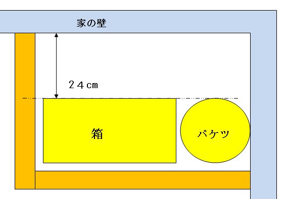箱やバケツは家の壁から